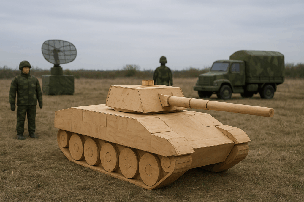 Russian firm Rusbal produces a wide range of imitations: two-dimensional silhouettes to mislead aerial surveillance, devices that mimic engine heat or radio traffic, and radar reflectors that distort enemy detection systems.